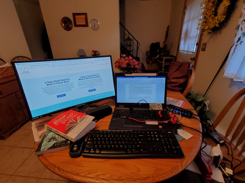 Many of you know that two months ago I fell on the treadmill and broke my kneecap. Really smart maneuver! Consequently, my writing corner, set up in the family room, was transferred to a corner of the dining room.